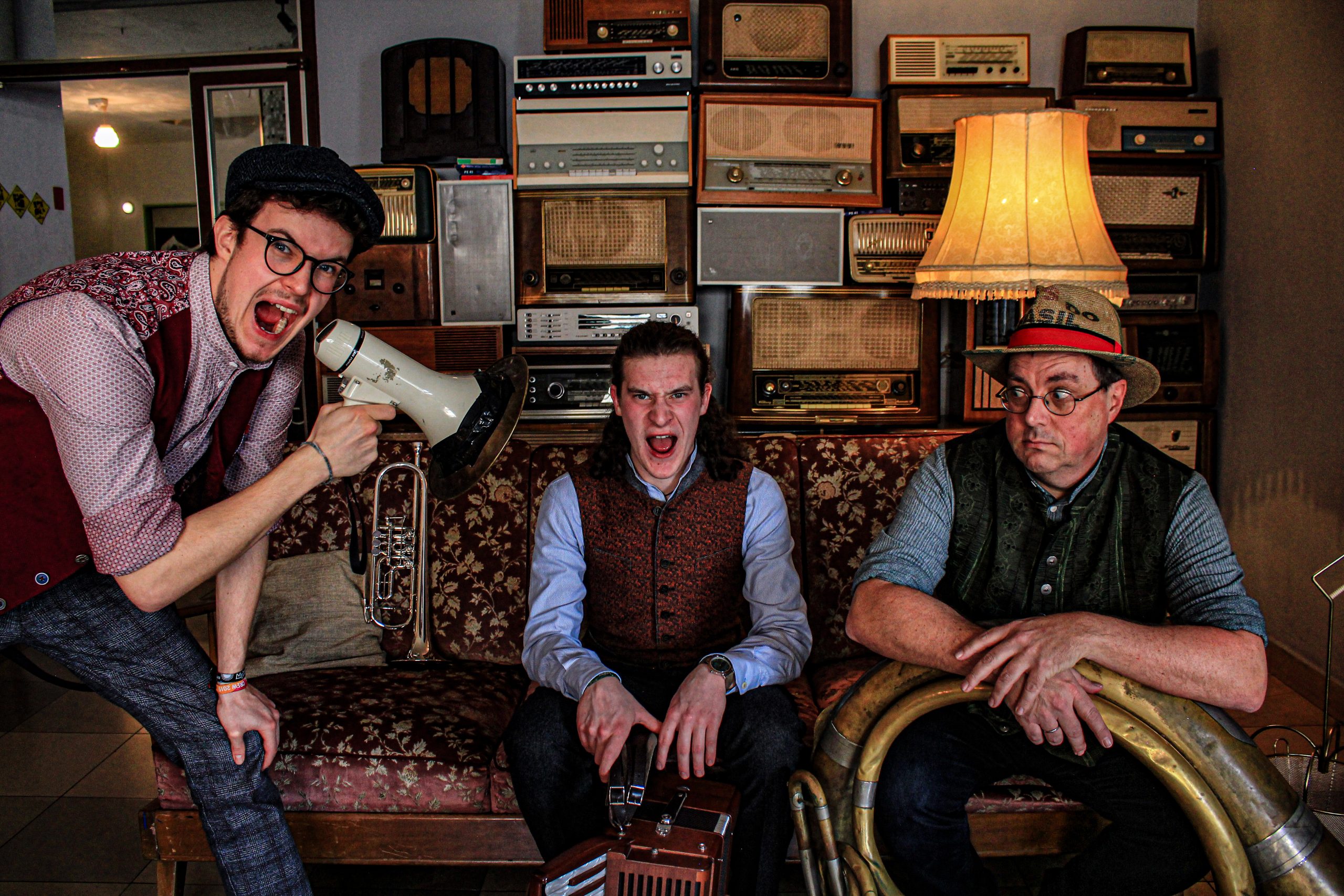 Martin (Akkordeon, Gesang), Johannes (Trompete, Cajon, Gesang) und Stefan