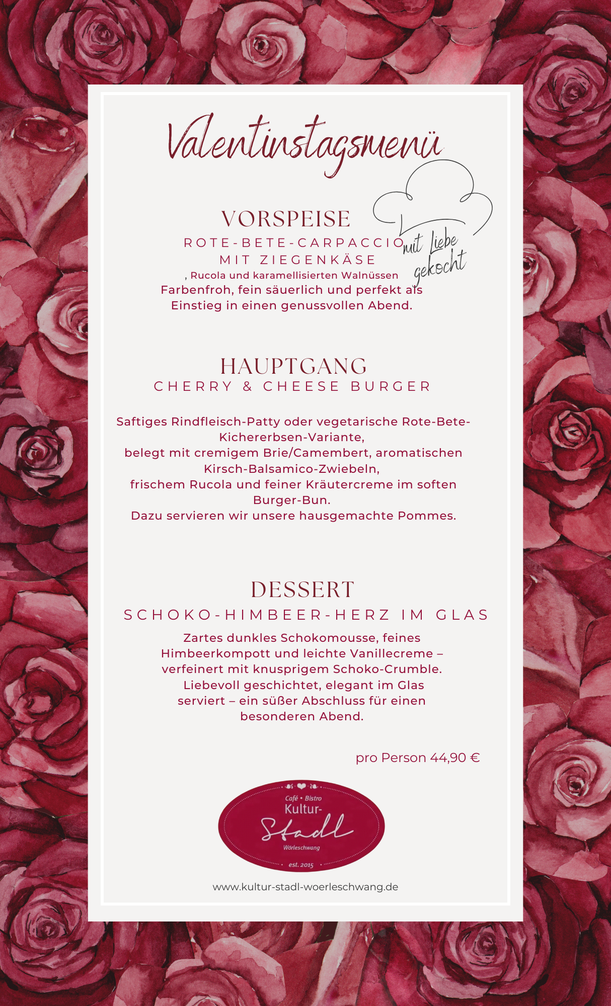 By Kultur Stadl|2025-12-27T13:48:08+01:0027. Dezember 2025|Kommentare deaktiviert für Valentinstag-Menü